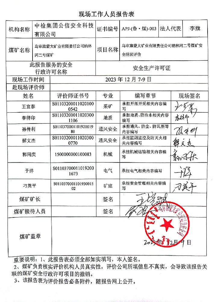 2烏審旗蒙大礦業(yè)有限責(zé)任公司納林河二號(hào)煤礦安全現(xiàn)狀評(píng)價(jià)報(bào)告