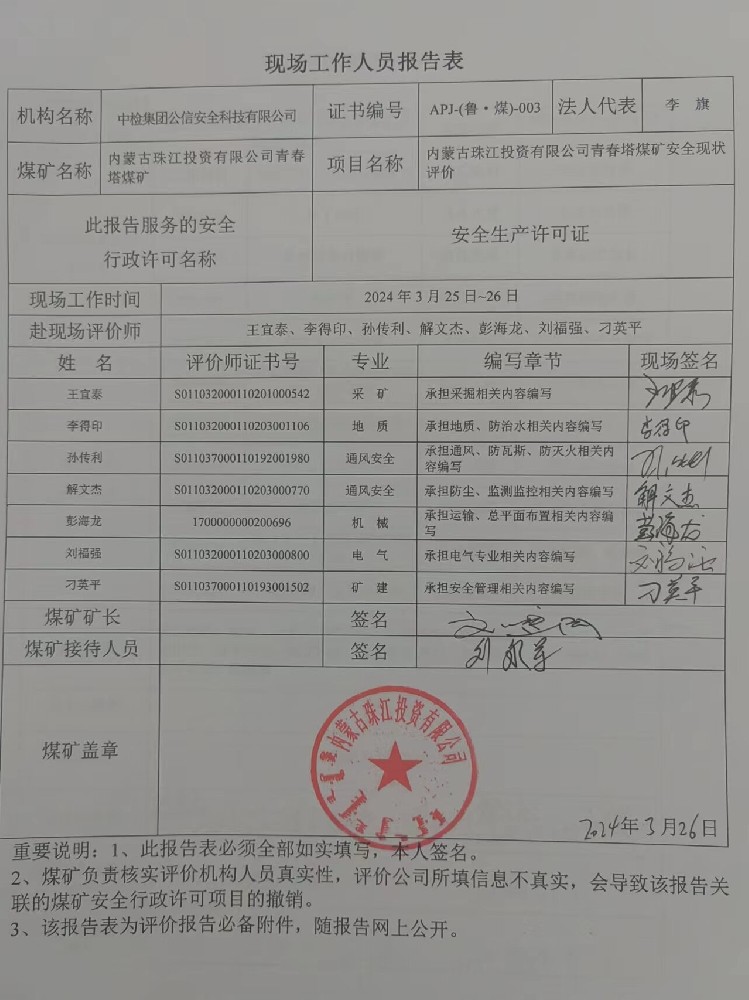 4內(nèi)蒙古珠江投資有限公司青春塔煤礦安全現(xiàn)狀評(píng)價(jià)