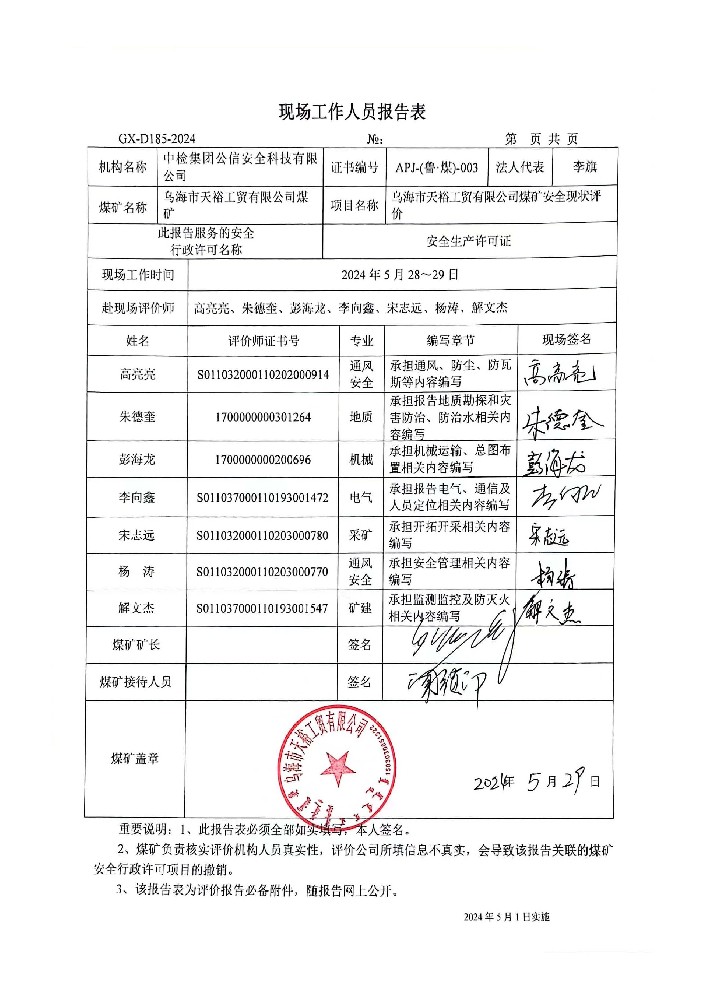 7烏海市天裕工貿(mào)有限公司煤礦安全現(xiàn)狀評(píng)價(jià)