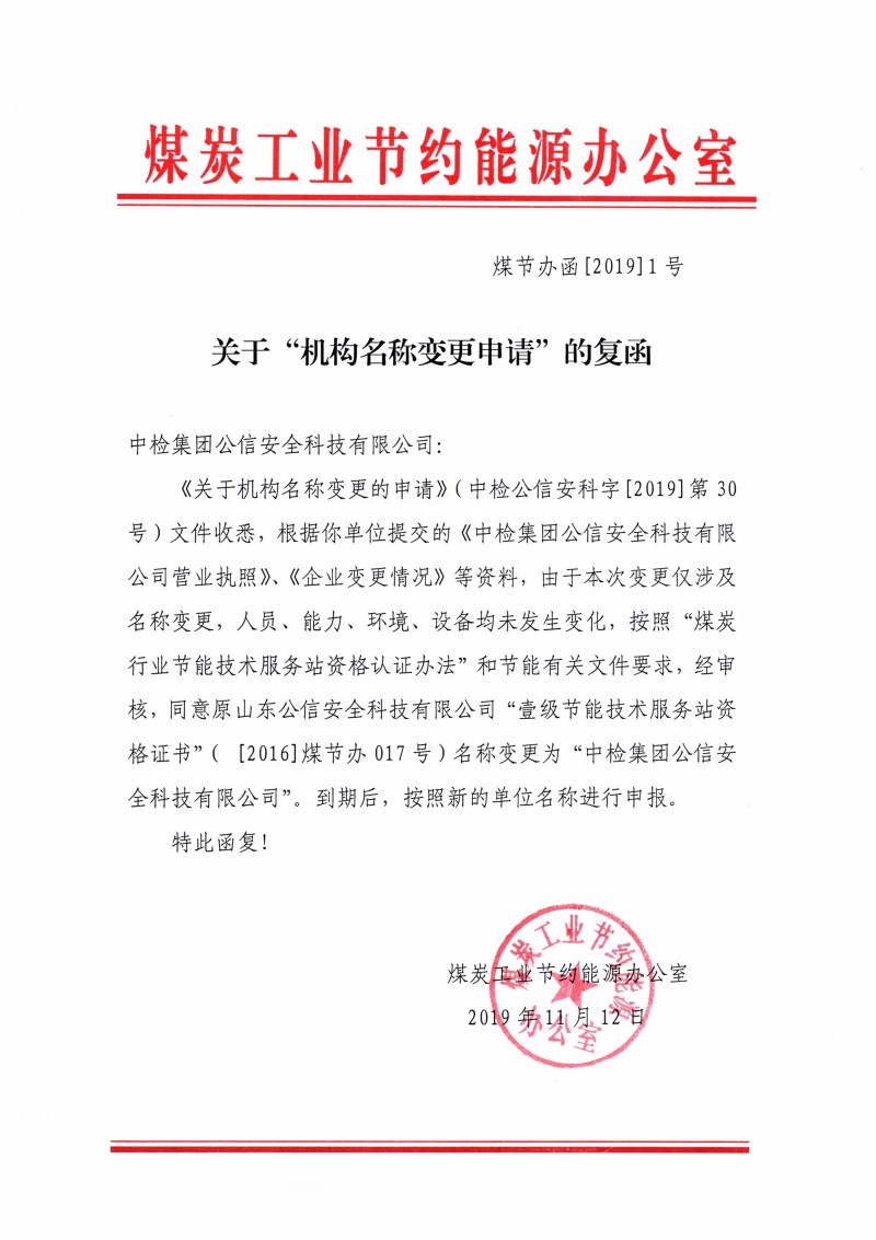 機(jī)構(gòu)名稱:中檢集團(tuán)公信安全科技有限公司證書(shū)編號(hào):[2016]煤節(jié)辦復(fù)017號(hào)有效期至:2022年9月