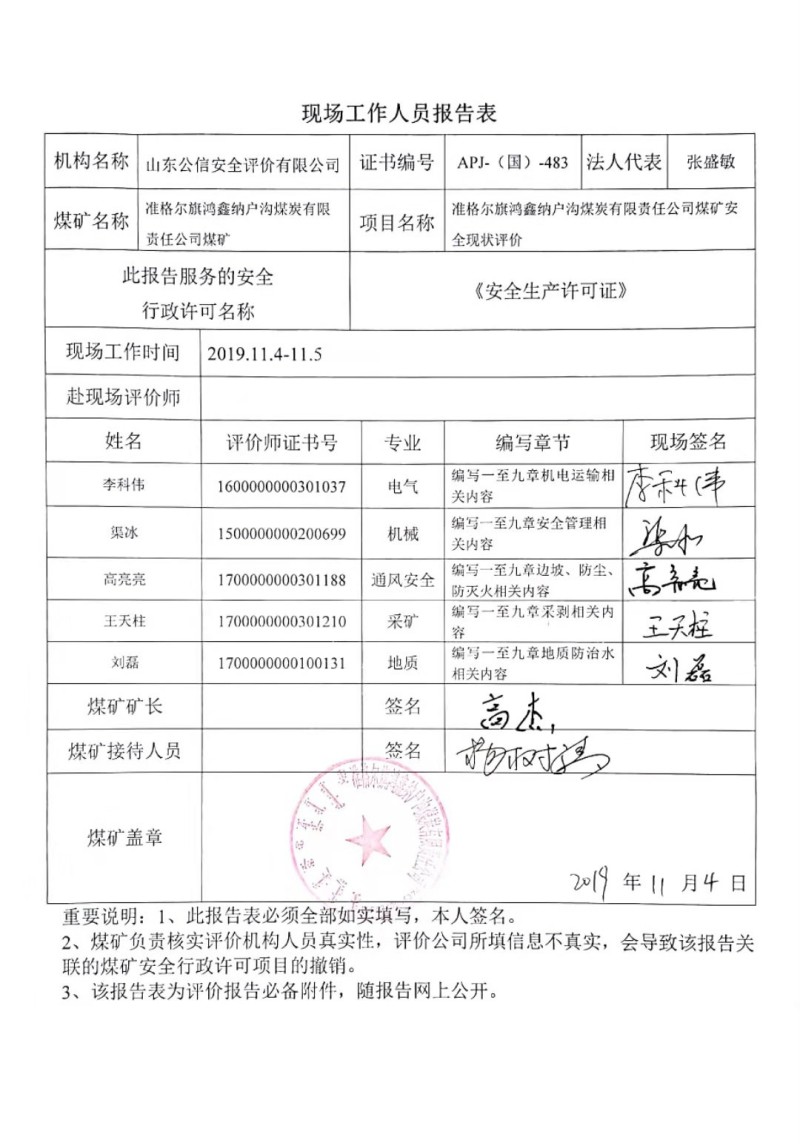 安全評價(jià)報(bào)告網(wǎng)上公開信息表 季度: 四季度 評價(jià)項(xiàng)目名稱 準(zhǔn)格爾旗鴻鑫納戶溝煤炭有限責(zé)任公司煤礦安