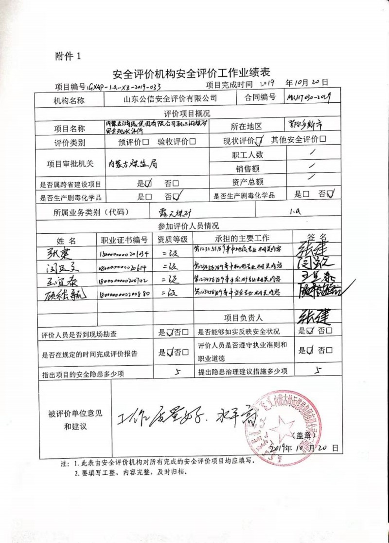 | 評價項目名稱 | 內(nèi)蒙古鴻遠煤炭集團有限公司孫三溝煤礦安全現(xiàn)狀評價報告 | ||||||