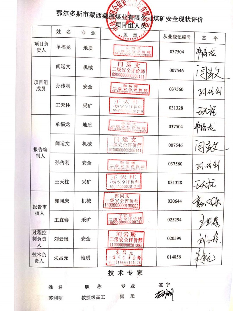 | 參與安全評價的技術(shù)專家:蘇利明 | |||||||